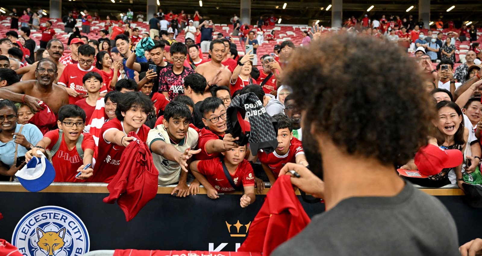 ليفربول ..أحتفل الدولي المصري محمد صلاح مع جماهير ليفربول الإنجليزي بعد الفوز على ليستر سيتي برباعية نظيفة في المباراة الودية التي جمعت بينهما منذ قليل.