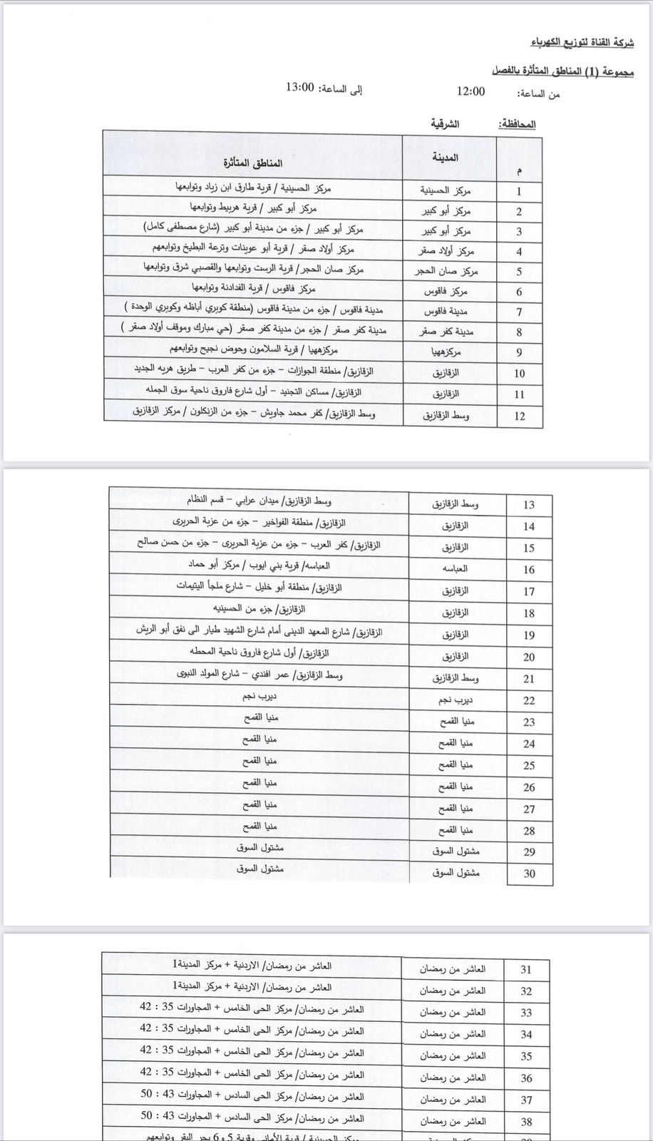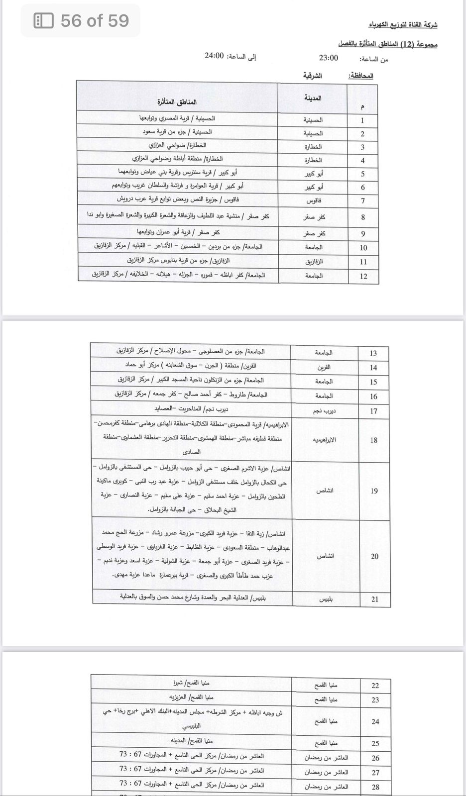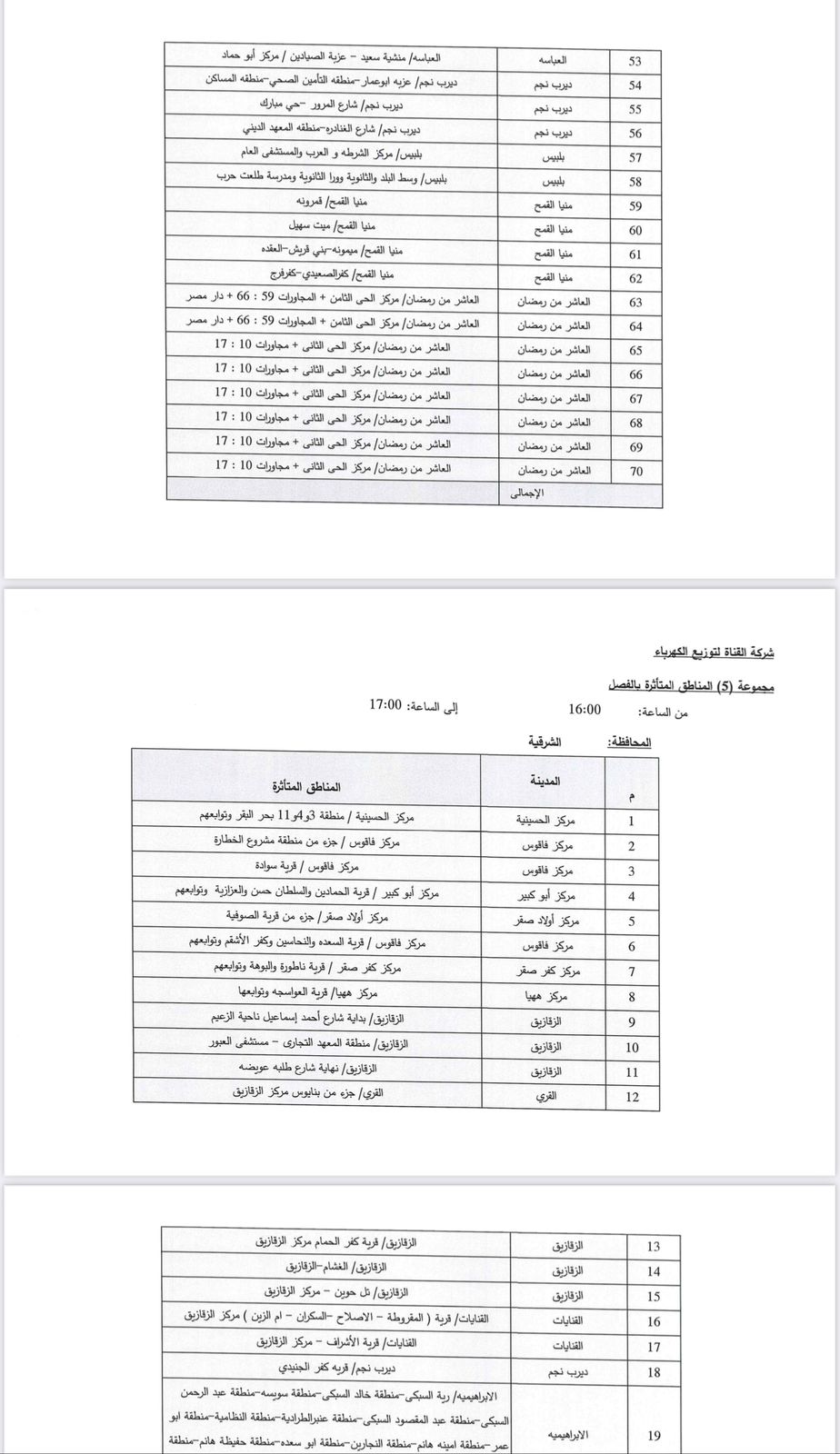 الحكومة تعلن مواعيد انقطاع الكهرباء في محافظة الشرقية