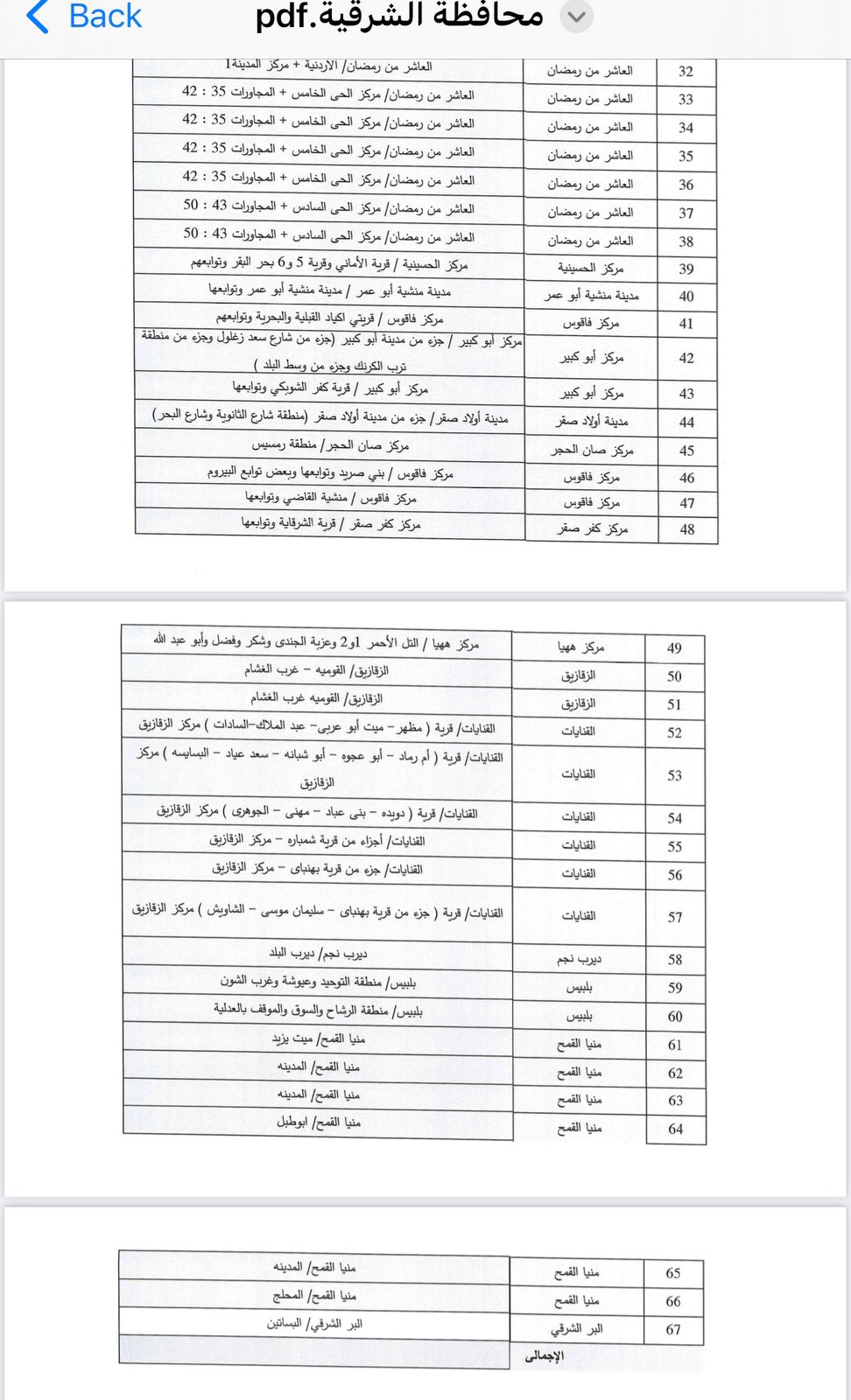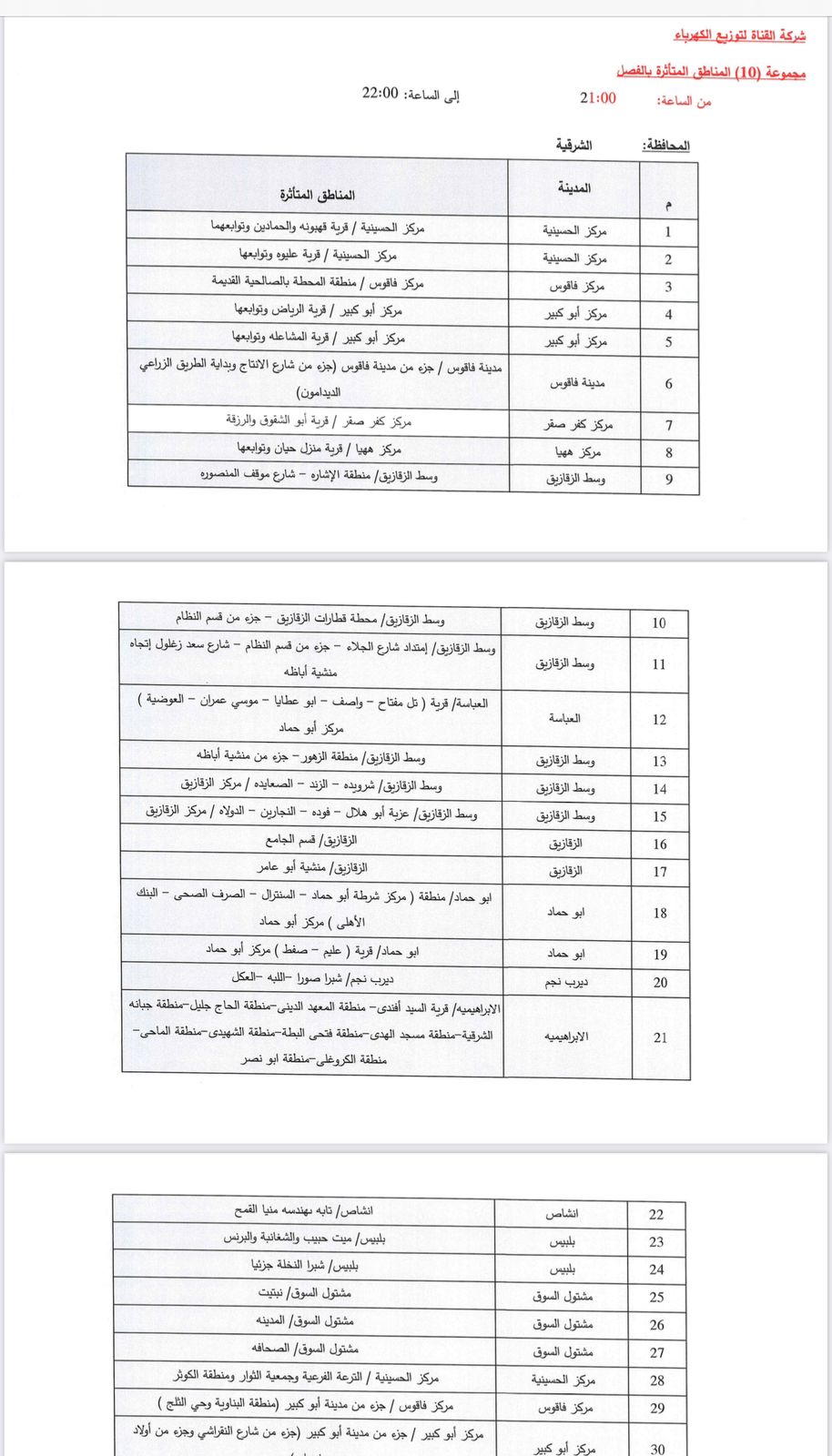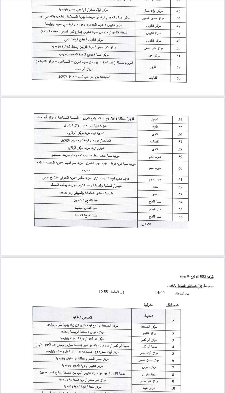 الحكومة تعلن مواعيد انقطاع الكهرباء في محافظة الشرقية