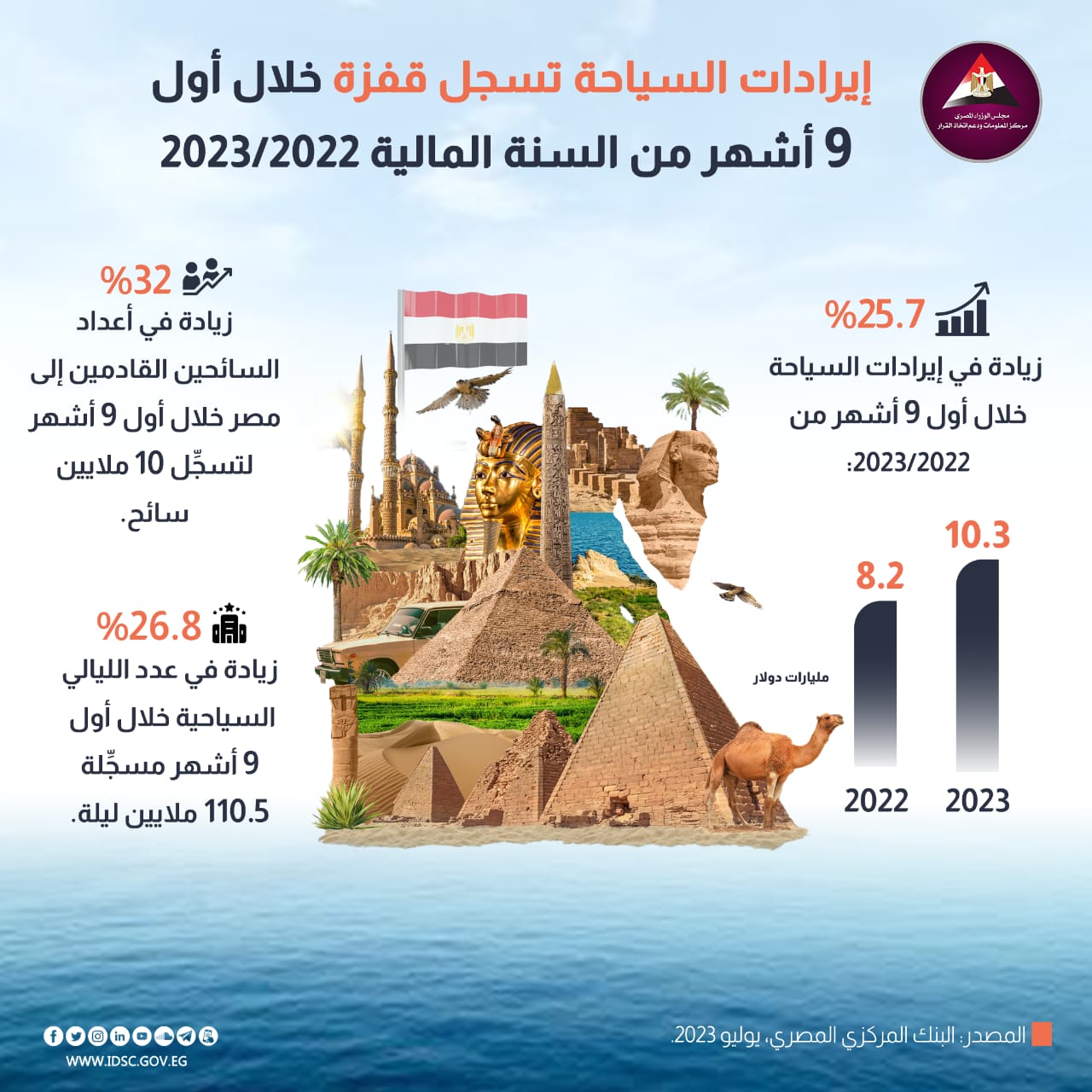 رصد مركز المعلومات ودعم اتخاذ القرار التابع لمجلس الوزراء المصري آخر تطورات قطاع السياحة والآثار المصري، خاصة بعد ظهور مؤشرات تعافي السياحة عالميا ومحليا جراء الأزمات التي واجهت العالم في السنوات الأخيرة، بداية بأزمة كورونا والنقص في سلاسل الإمداد والتضخم والأزمة الروسية الأوكرانية.