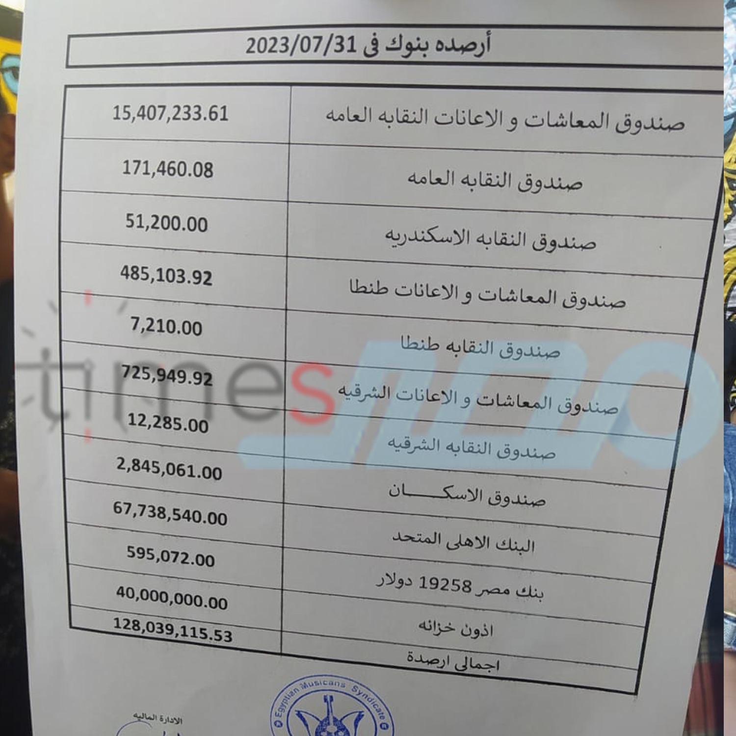استعرض الفنان مصطفى كامل نقيب الموسقيين أرصدة نقابة الموسيقيين في البنوك خلال فترة ولايته، والتي بلغت 128 مليون جنيه.