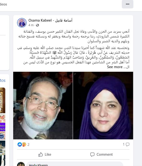 وقال العالم الأزهري، عبر موقع التواصل الاجتماعي فيسبوك: "نحتسبه عند الله شهيدا كما أخبرنا سيدنا النبى محمد صلى الله عليه وسلم، فى حديثه الشريف عنْ أبي هُرَيْرةَ، قالَ: قالَ رَسُولُ اللَّه ﷺ: الشُّهَدَاءُ خَمسَةٌ: المَطعُونُ، وَالمبْطُونُ، والغَرِيقُ، وَصَاحبُ الهَدْم وَالشَّهيدُ في سبيل اللَّه".