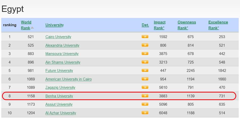 جامعة بنها ضمن أفضل 10 جامعات مصري بالتصنيف الاسباني ويبومتركس