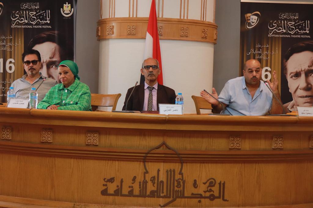 أقام المهرجان القومي للمسرح المصري في دورته الـ 16 برئاسة الفنان محمد رياض، اليوم 2 اغسطس، جلسة نقاشية أدارها الناقد ناصر العزبي تحمل عنوان" النقاد والمترجمون الراحلون" وذلك بحضور د.أحمد يوسف عزت ، ومحمد الروبي، ود. نجوي عانوس.