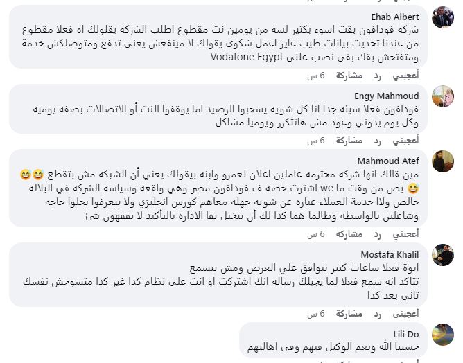 وقال ،" المشكلة الأساسية و المضحكة فى الموضوع انى كنت محول ليهم من شركة اتصالات تانية علشان كانوا بينصبوا عليا و قولت اروح لفودافون شركة محترمه Vodafone Egypt اتارى المثل اللى بيقول ما اسخم من سيدى إلا ستى عموما انا مش هسكت و هقدم شكوى لشركة نترا و شكوى لجهاز حماية المستهلك".