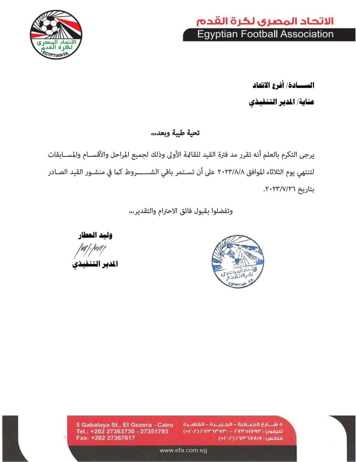 كما تحدد فتح القيد يوم 27 يوليو الجاري وحتى 5 أغسطس (قبل أن يتم تعديلها) للفترة الأولى وتنتهي القوائم الإضافية للدوري الممتاز حتى 14 / 9 / 2023.