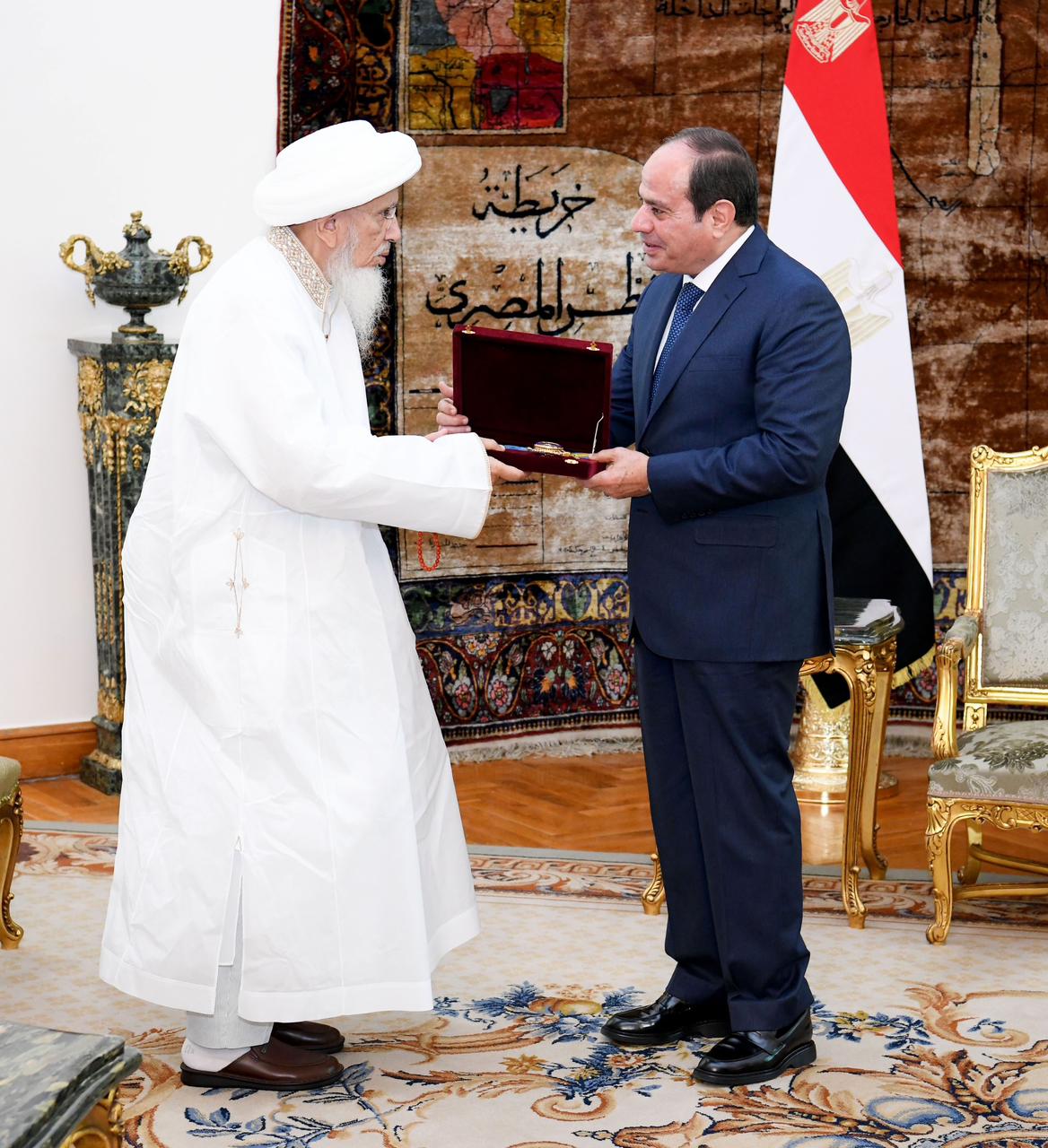 وقد قام الرئيس بمنح السلطان "مفضل سيف الدين"، سلطان البهرة، وشاح النيل، تقديراً لجهوده المتواصلة في مصر على المستويات الثقافية والخيرية والمجتمعية.