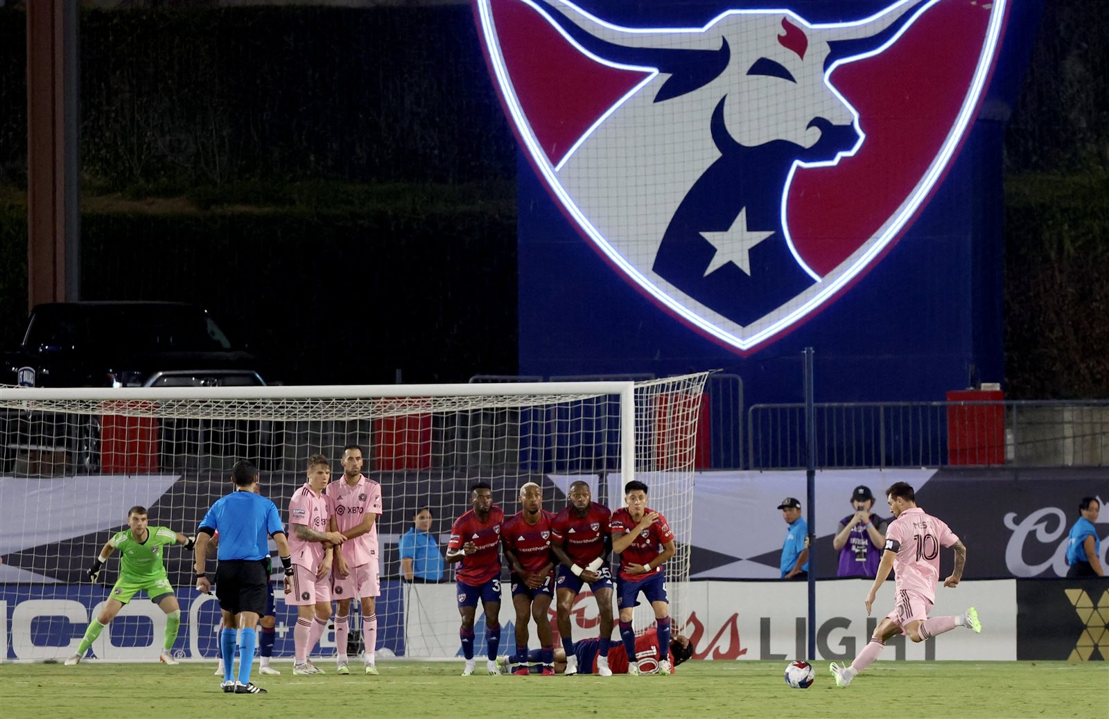 وتأخر انتر ميامي بهدفين قبل 10 دقائق من صافرة النهاية، ليقلص الفارق عبر النيران الصديقة بعدما أودع المدافع ماركو فارفان الكرة في مرمى فريقه دالاس عن طريق الخطأ اثر ركلة حرة نفذها ميسي (80).
