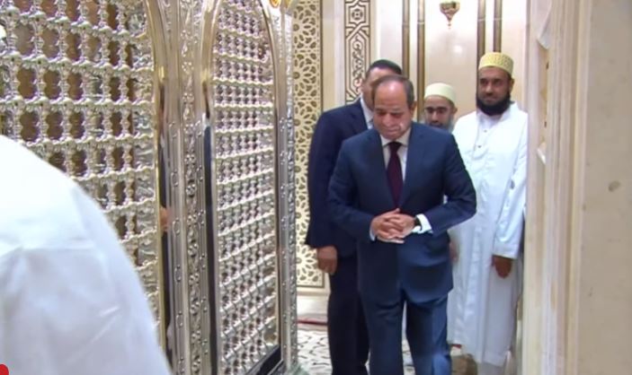 وتفقد الرئيس السيسي أعمال تطوير المقصورة بمسجد السيدة نفيسة رضي الله عنها، وقام الرئيس السيسي بتأدية الصلاة فيه.