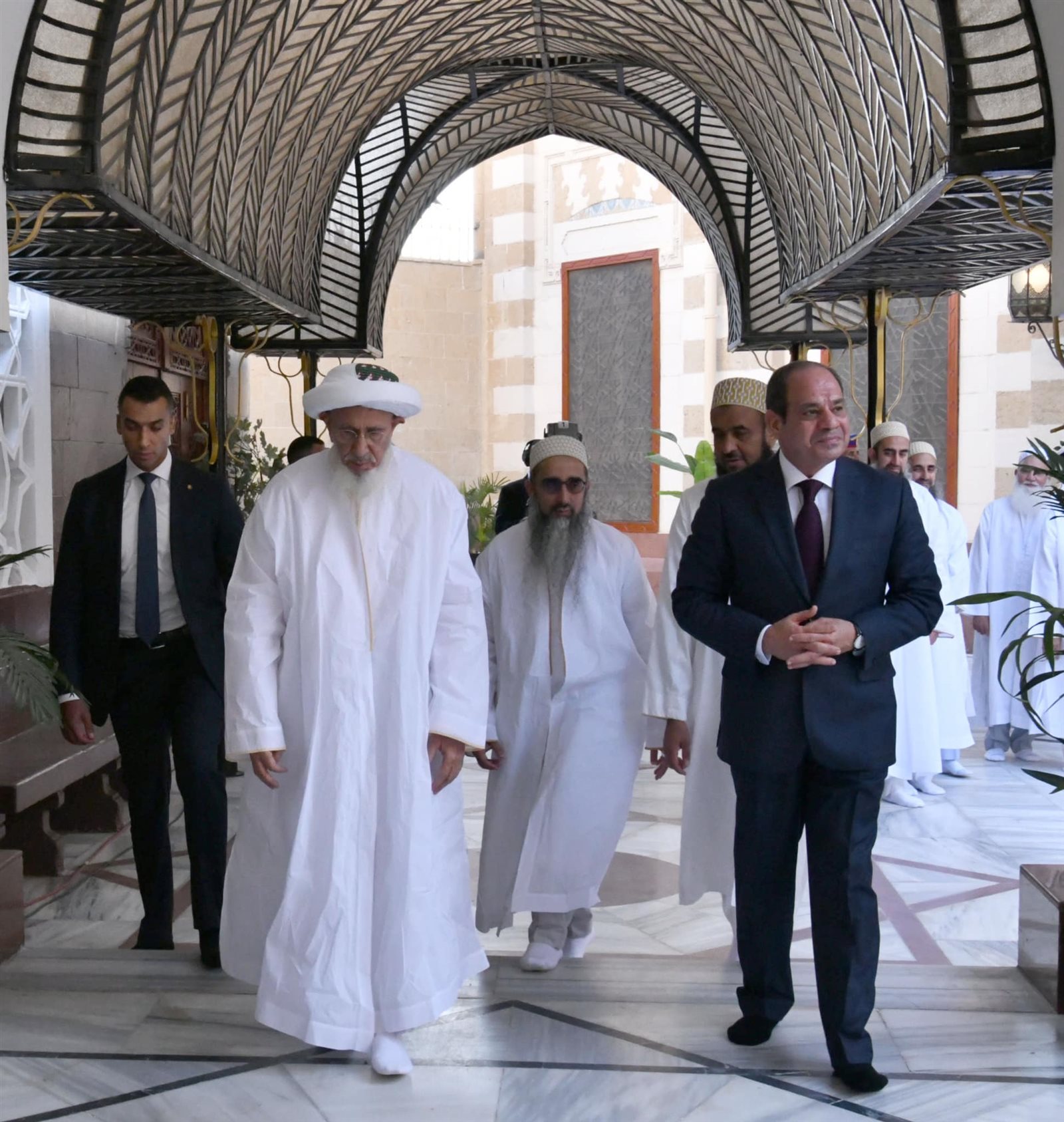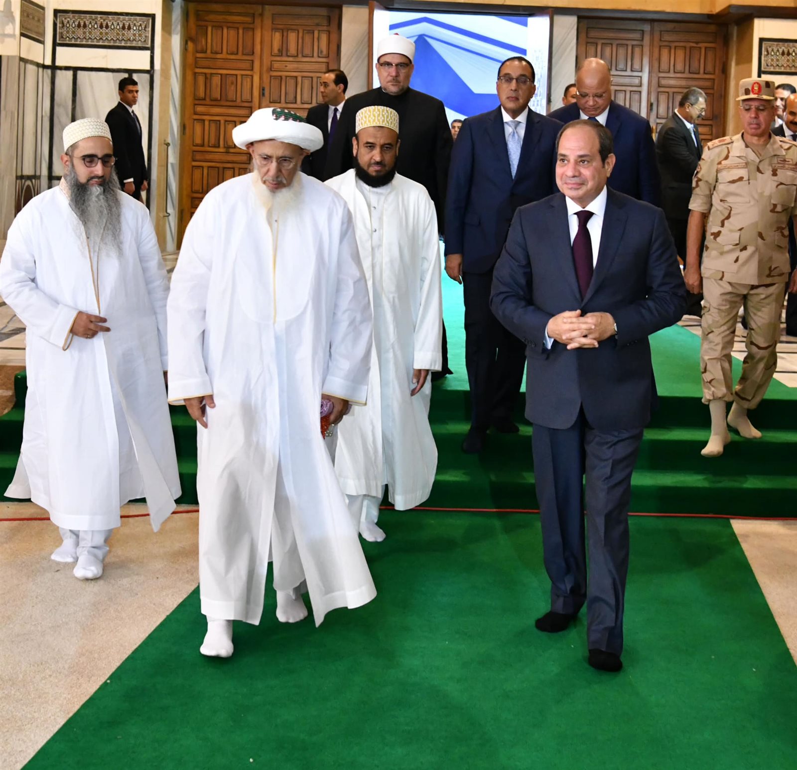 ونشر المستشار أحمد فهمي المتحدث الرسمي لرئاسة الجمهورية صورا لافتتتاح الرئيس عبد الفتاح السيسي اليوم يرافقه السلطان مفضل سيف الدين، سلطان طائفة البهرة بالهند، أعمال التطوير والترميم لمسجد السيدة نفيسة رضي الله عنها.