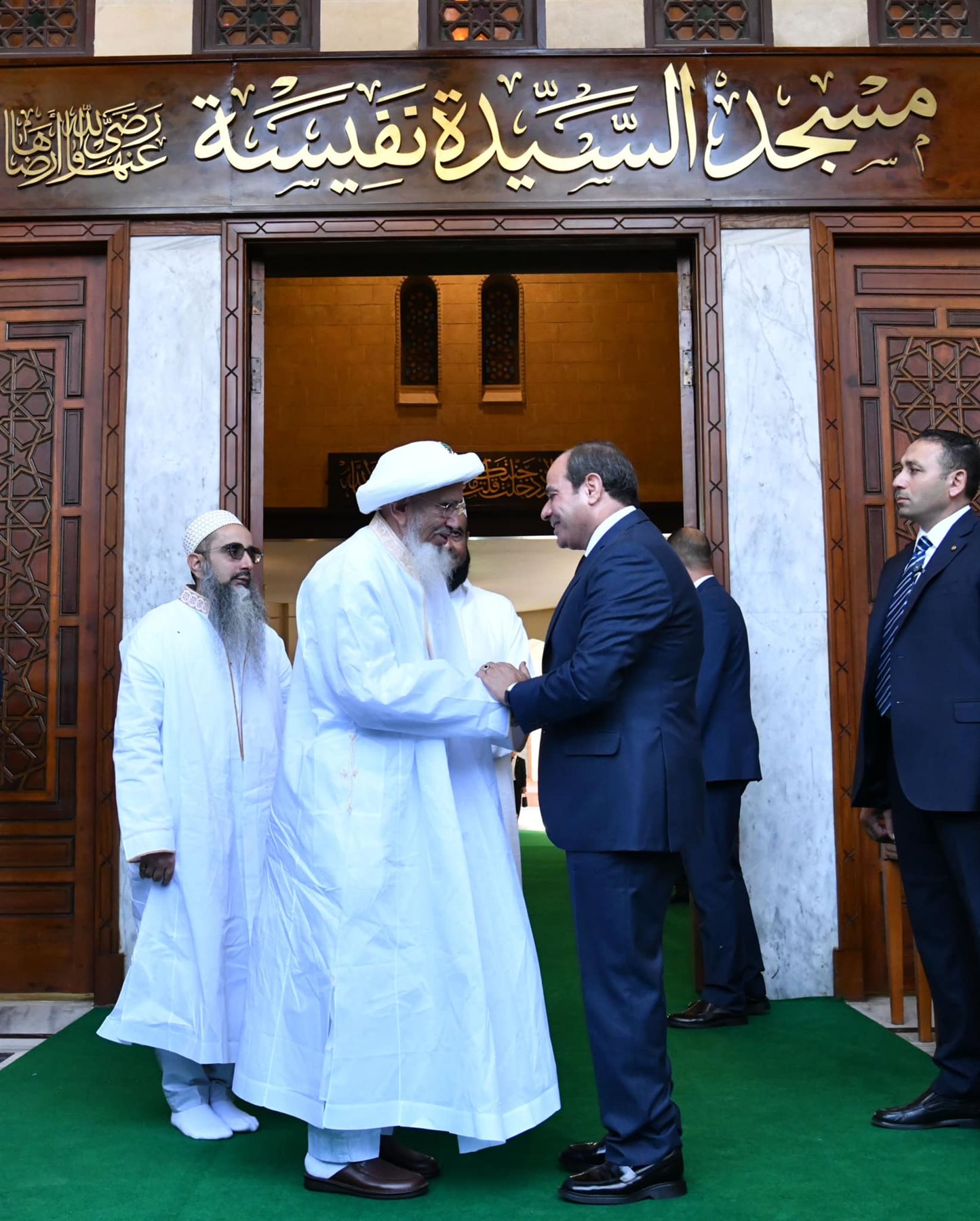 أجرى الرئيس عبد الفتاح السيسي، رئيس الجمهورية، صباح اليوم الثلاثاء، جولة تفقدية بمسجد السيدة نفيسة، بعد أعمال التجديد والترميم، رفقة السلطان مفضل سيف الدين، سلطان طائفة البهرة بالهند، وفي حضور وزير الأوقاف الدكتور محمد مختار جمعة، ومحافظ القاهرة اللواء خالد عبد العال.