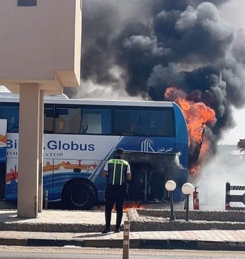 كان اللواء محيي سلامة مدير أمن البحر الأحمر تلقى إخطارا من غرفة عمليات النجدة يفيد بنشوب حريق هائل داخل أتوبيس نقل ركاب، بالمدخل الجنوبي لمدينة الغردقة.