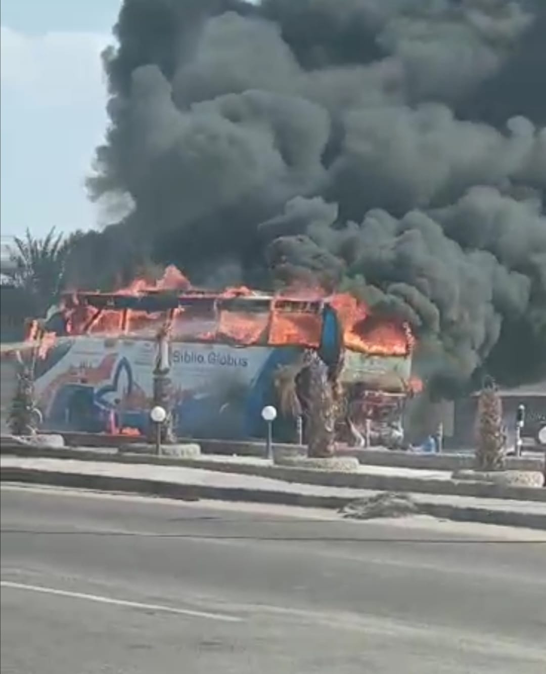 احتراق أتوبيس على طريق الغردقة - سفاجا ونجاة 32 راكبًا من الموت