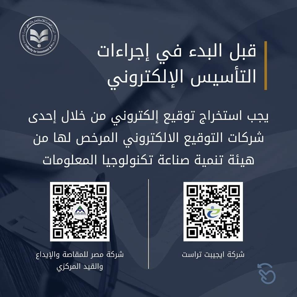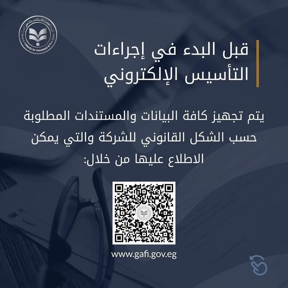 ويمكن للمستثمرين الراغبين في تأسيس شركاتهم عبر المنصة الرقمية الدخول البوابة الالكترونية للهيئة العامة للاستثمار والمناطق الحرة (www.gafi.gov.eg)،حيث تنقسم الي مرحلتين قبل التأسيس وبدء التأسيس.
