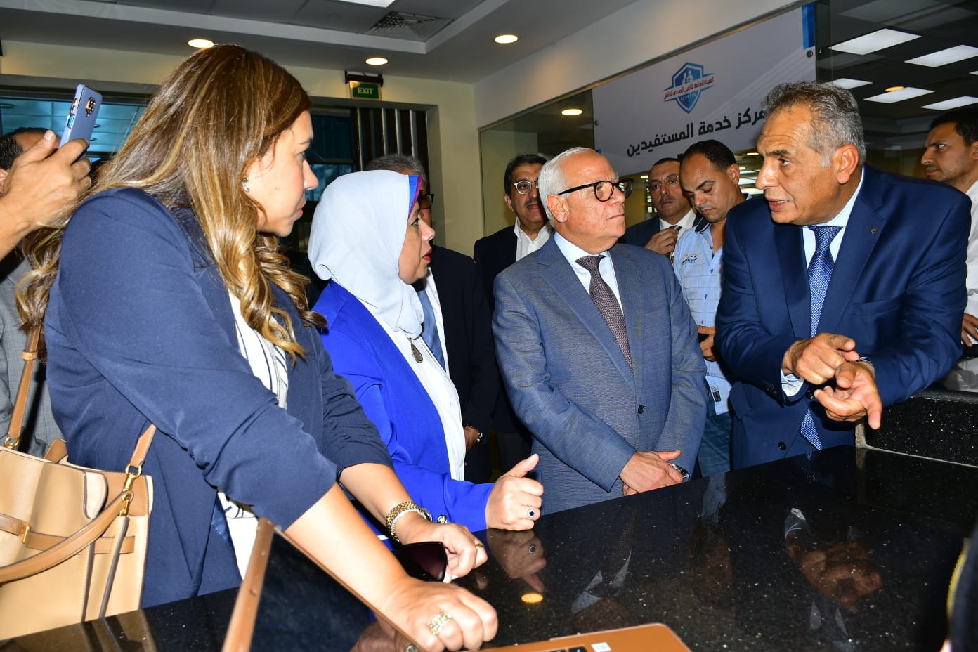 محافظ بورسعيد يتابع سير العمل في توزيع الكارت الموحد الذكي داخل عدد من منافذ البريد
