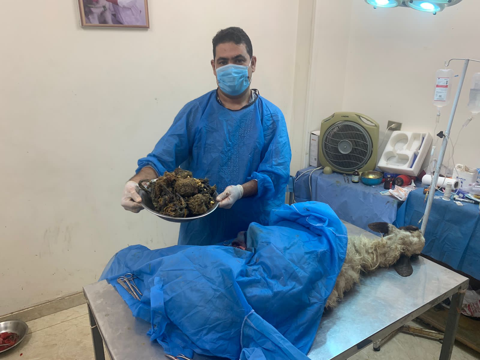 تمكن فريق طبي بيطرى برئاسة الدكتور عبدالحليم القصبي استاذ الجراحة والتخدير و الاشعة بكلية الطب البيطري جامعة بنها و المستشار العلمي للمستشفى البيطري العسكري من إنقاذ خروف من الموت عقب تناولها كميات كبيرة من الحبال والشكائر البلاستيكية بلغ وزنها أكثر من 4 كيلو ونصف ادت الي وقف حركه البطن والامعاء.