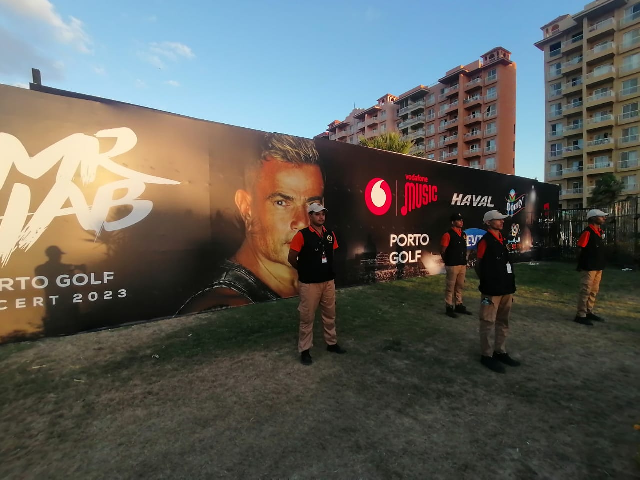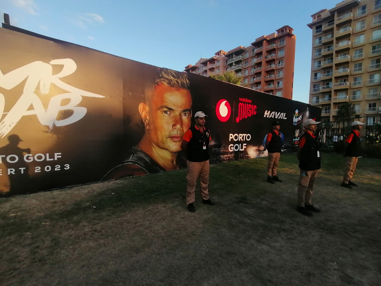انتشر رجال الأمن بمحيط حفل الفنان عمرو دياب بالساحل الشمالي، قبل انطلاق الحفل لتأمين دخول الجماهير.