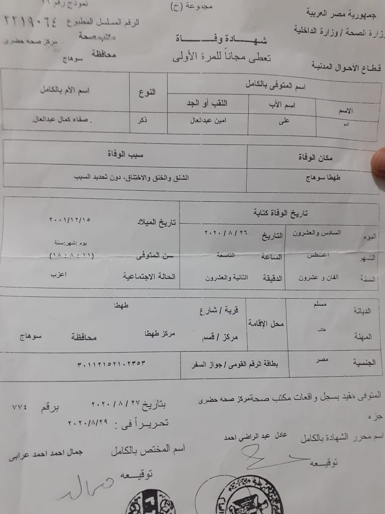 ويقول والد الضحية "ابني آدم كان زينة الشباب، راح لأهلي في نجع حمد مركز طهطا وهو راجع العصابة عارفين إني صاحب محلات تجارية، خططوا لخطفه جه سائق التوك توك ومعاه صاحبه اخدوه من النجع وفي عودتهم دخلوا طريق تاني قاله هجيب طلب، وآدم وافق أصله يعرفه وآمن له".