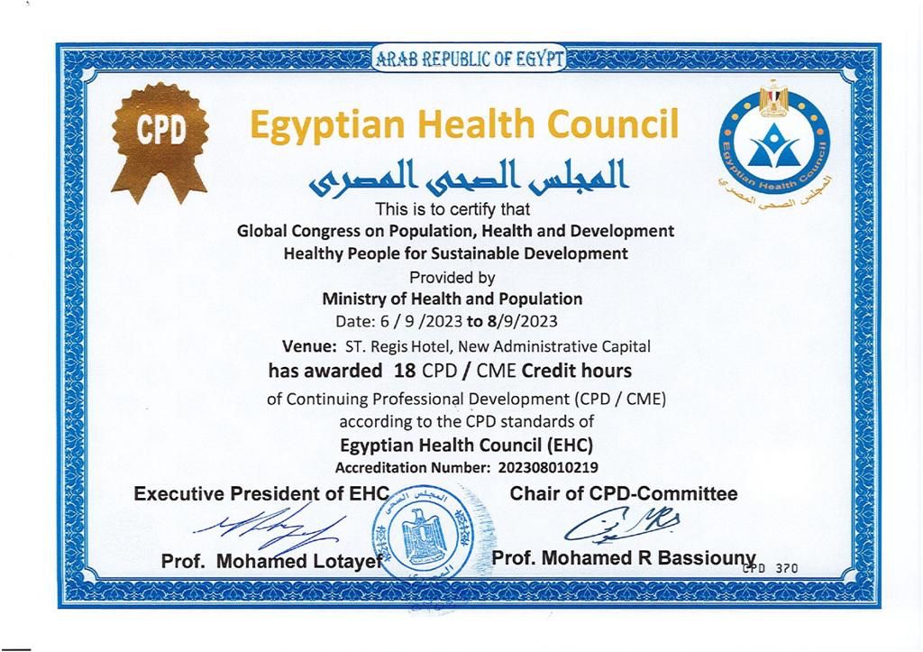 البرنامج العلمي للمؤتمر العالمي للصحة يحصل على شهادة الاعتماد من المجلس الصحي المصري