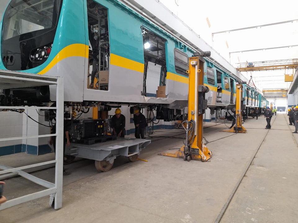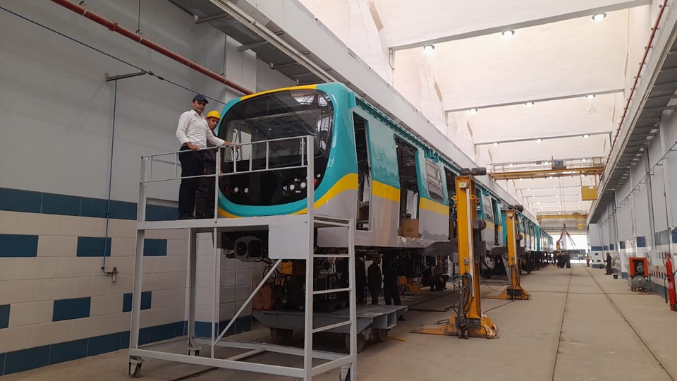 وتفقد وزير النقل خلال الجولة ورش تصنيع قطارات مترو الأنفاق الجديدة، التي تحمل شعار "صنع في مصر"، بمصنع مهمات السكك الحديدية "سيماف" في حلوان.