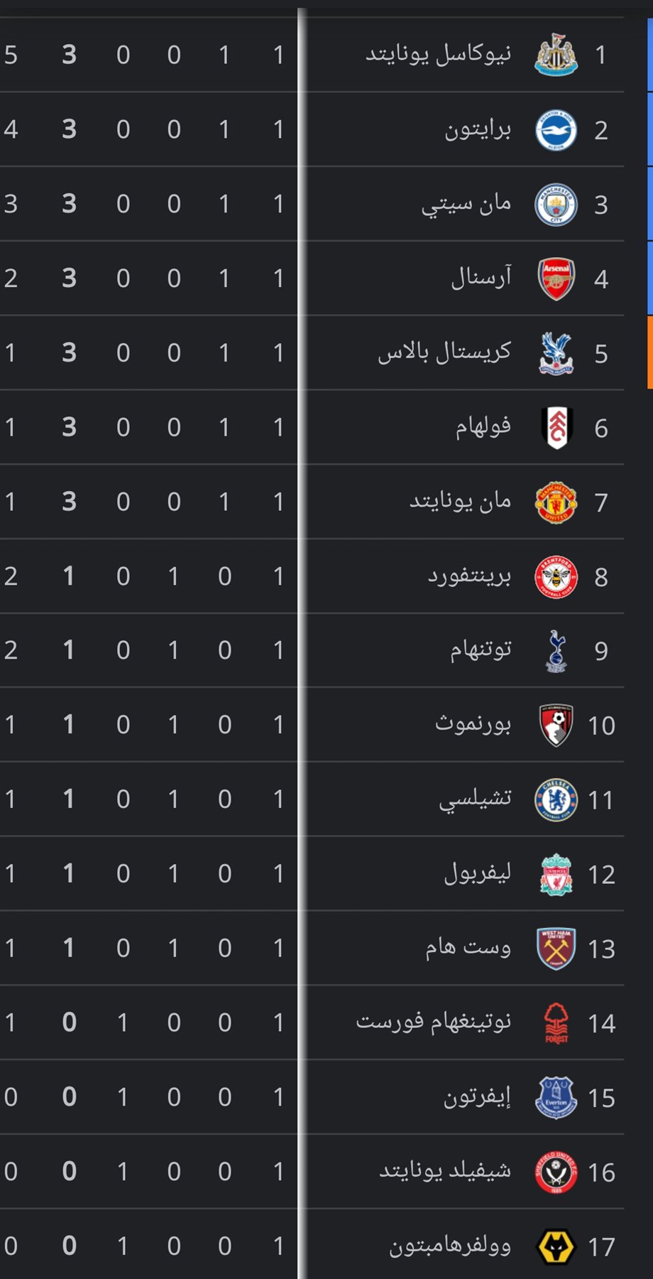 ترتيب الدوري الانجليزي بعد نهاية الجولة الأولى.. نيوكاسل تتصدر
