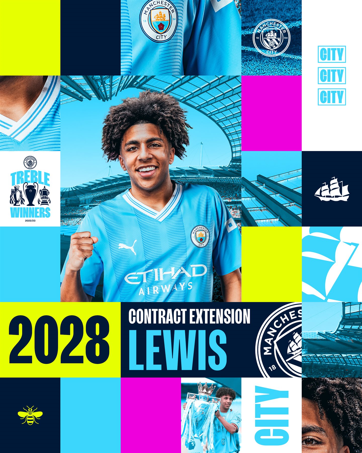 ونشر نادي مانشستر سيتي بيان رسمي جاءت كالاتي: "توصل نادي مانشستر سيتي لاتفاق مع الظهير الإنجليزي الشاب ريكو لويس لتمديد عقده حتى عام 2028".