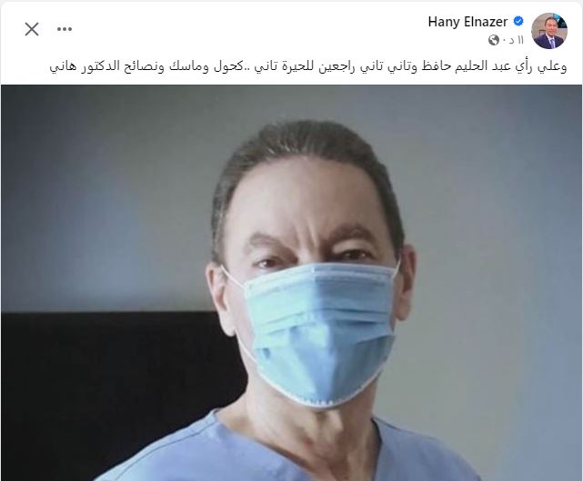حذر الدكتور هانى الناظر المصريين بعد انتشار متحورات لفيروس كورنا ، وكتب عبر صفحته على موقع التواصل الاجتماعى فيسبوك ،" وعلي رأي عبد الحليم حافظ وتاني تاني راجعين للحيرة تاني ..كحول وماسك ونصائح الدكتور هاني".