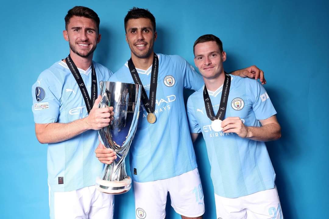 خضع لاعبي نادي مانشستر سيتي الإنجليزي تحت قيادة المدرب الإسباني بيب جوارديولا لجلسة تصوير خاصة بكأس السوبر الأوروبي عقب التتويج بعد على حساب نظيره إشبيلية.