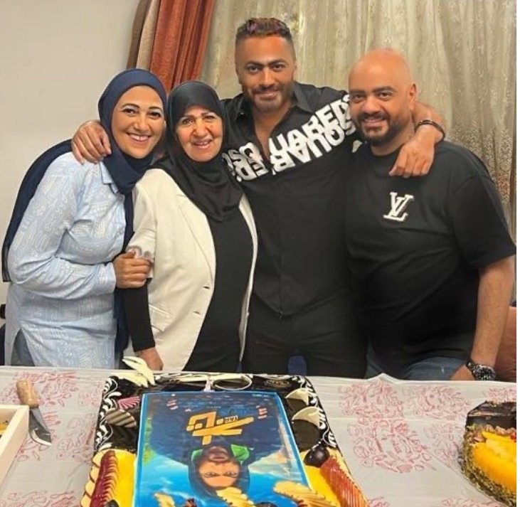 فى غياب أولاده.. أسرة تامر حسنى تحتفل بعيد ميلاده