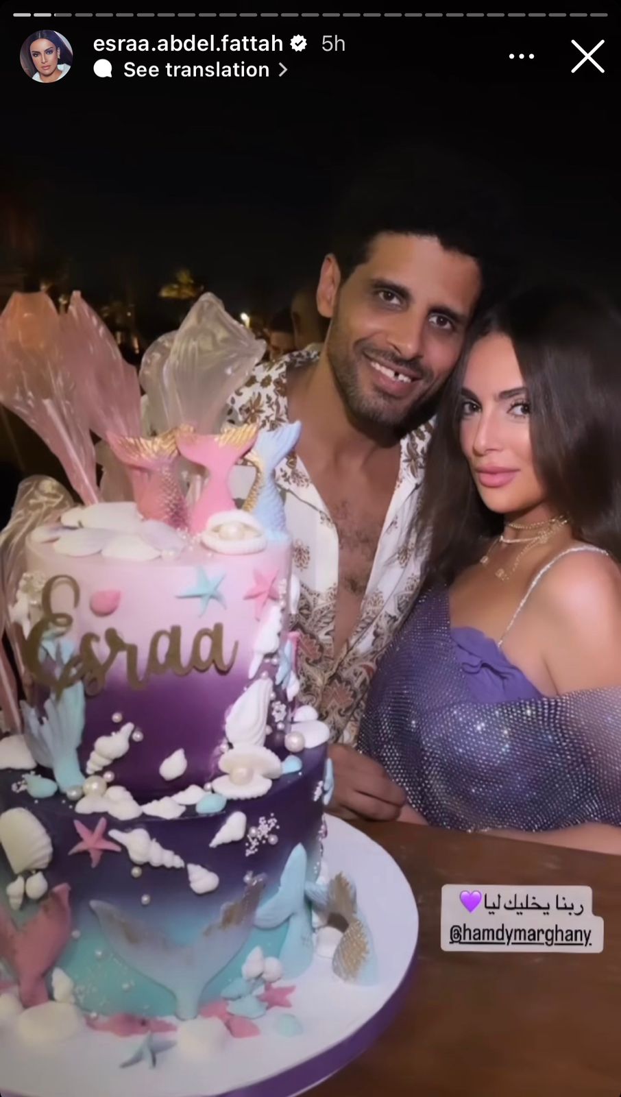 ونشرت نجمة مسرح مصر إسراء صورًا من احتفالها بعيد ميلادها مع زوجها وأصدقائها، عبر حسابها على "انستجرام"، وكتبت في استوري عبر انستجرام: "بحبك جدًا، ربنا يخليك ليا".