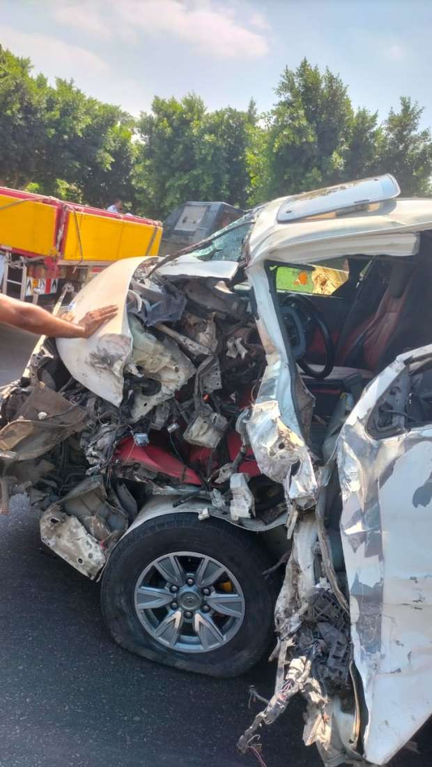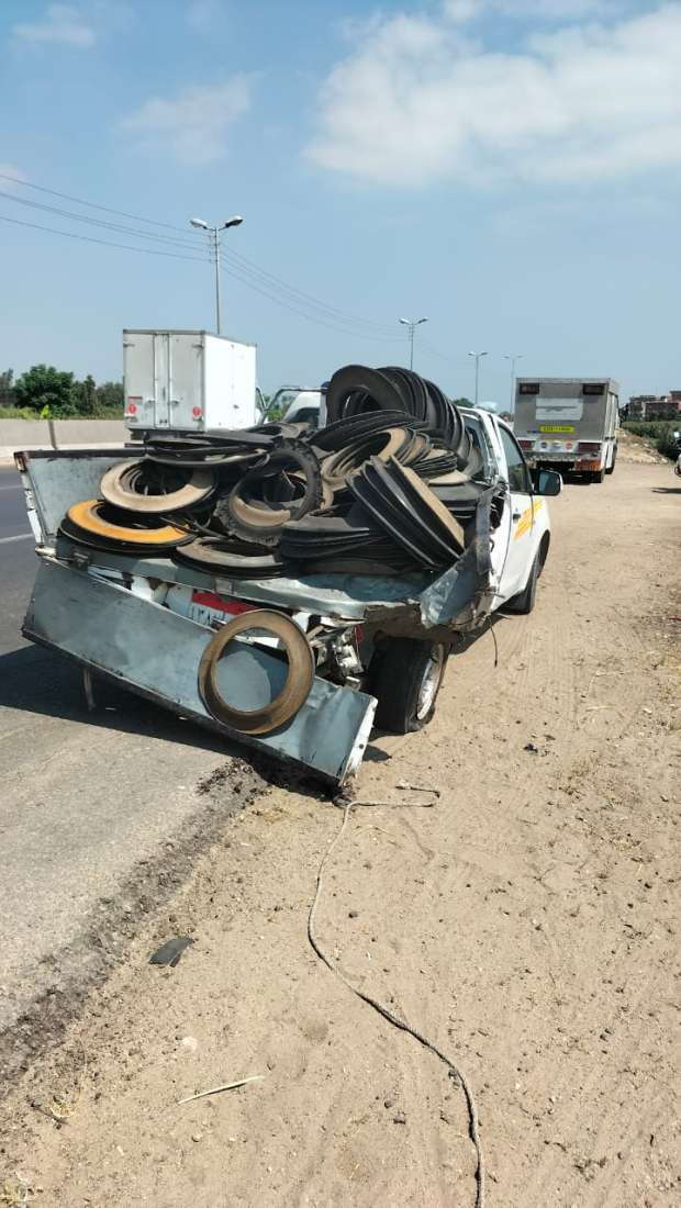 إصابة 11 شخصا في حادث تصادم ميكروباص وسيارة نقل بالبحيرة (صور)