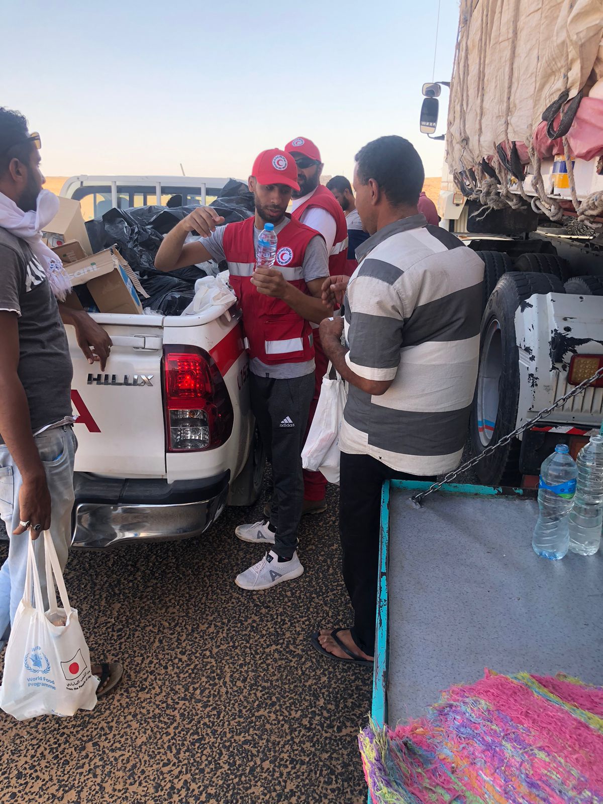 3. قامت وزارة النقل من خلال هيئة الموانئ البرية والجافة وبالتنسيق مع محافظة اسوان ووزارتي الداخلية والصحة بدفع عربات اسعاف الي أماكن التكدس وتوزيع مياه ووجبات على السائقين ( مرفق صور)