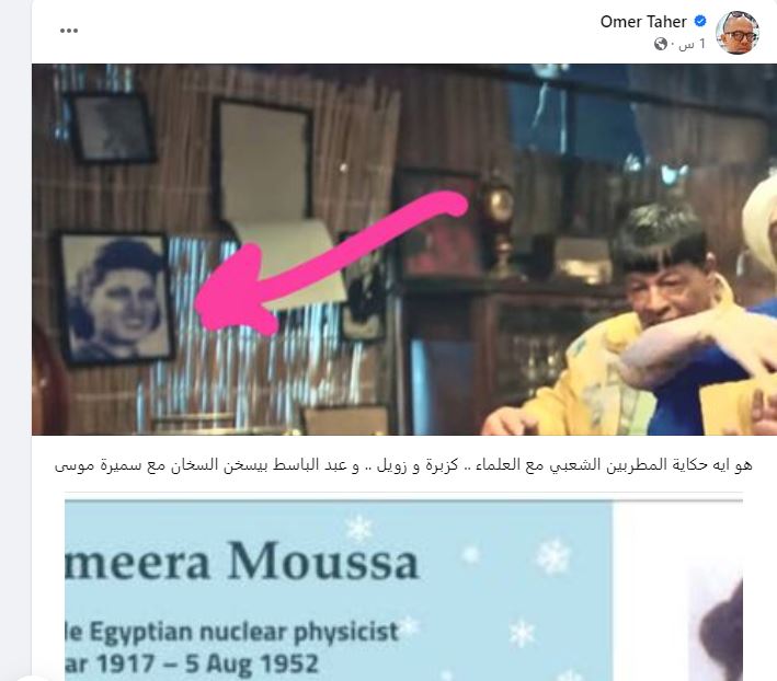 الكاتب عمر طاهر علق على الموضوع وقال “ هو ايه حكاية المطربين الشعبي مع العلماء .. كزبرة و زويل .. و عبد الباسط بيسخن السخان مع سميرة موسى”.
