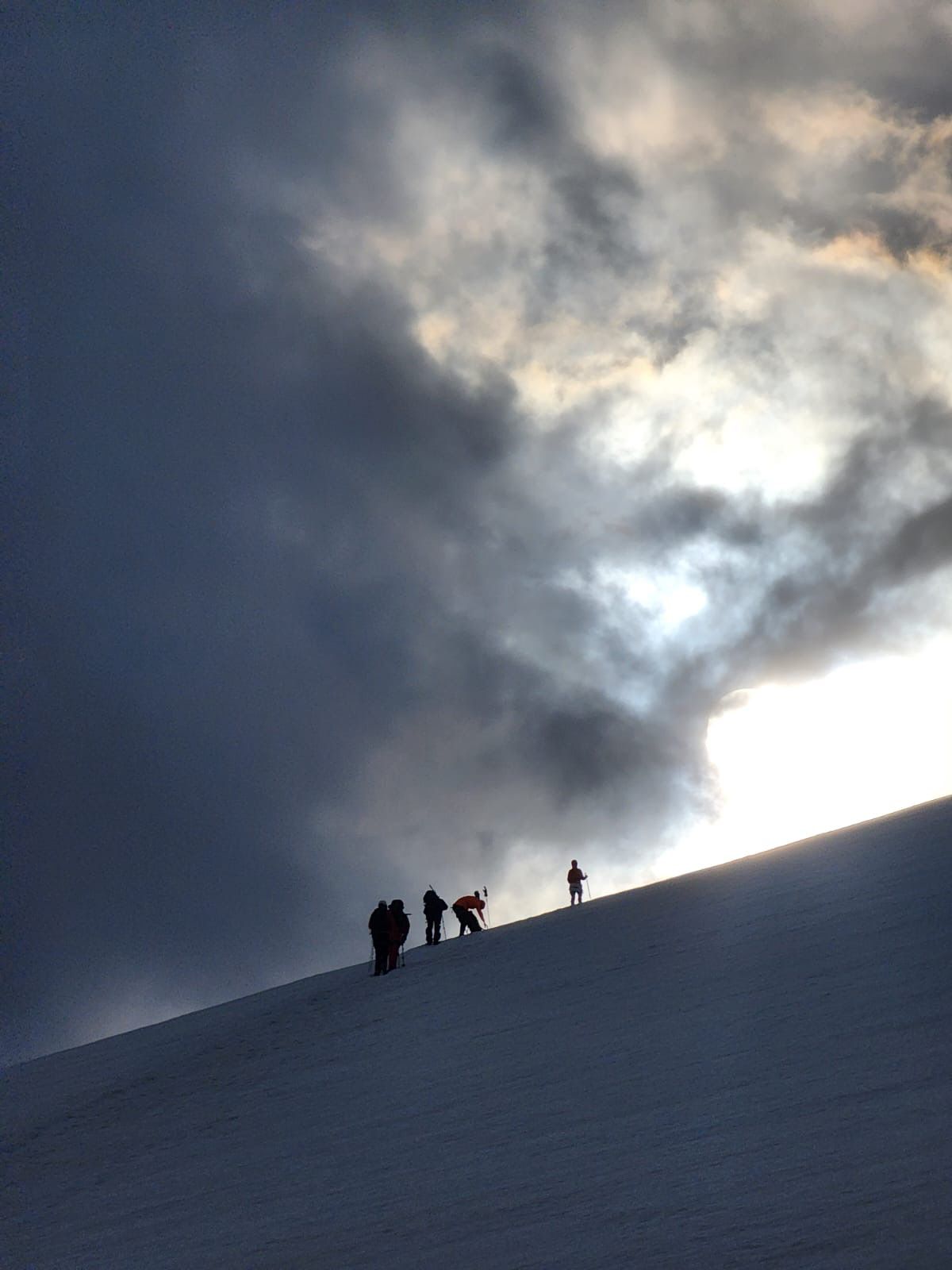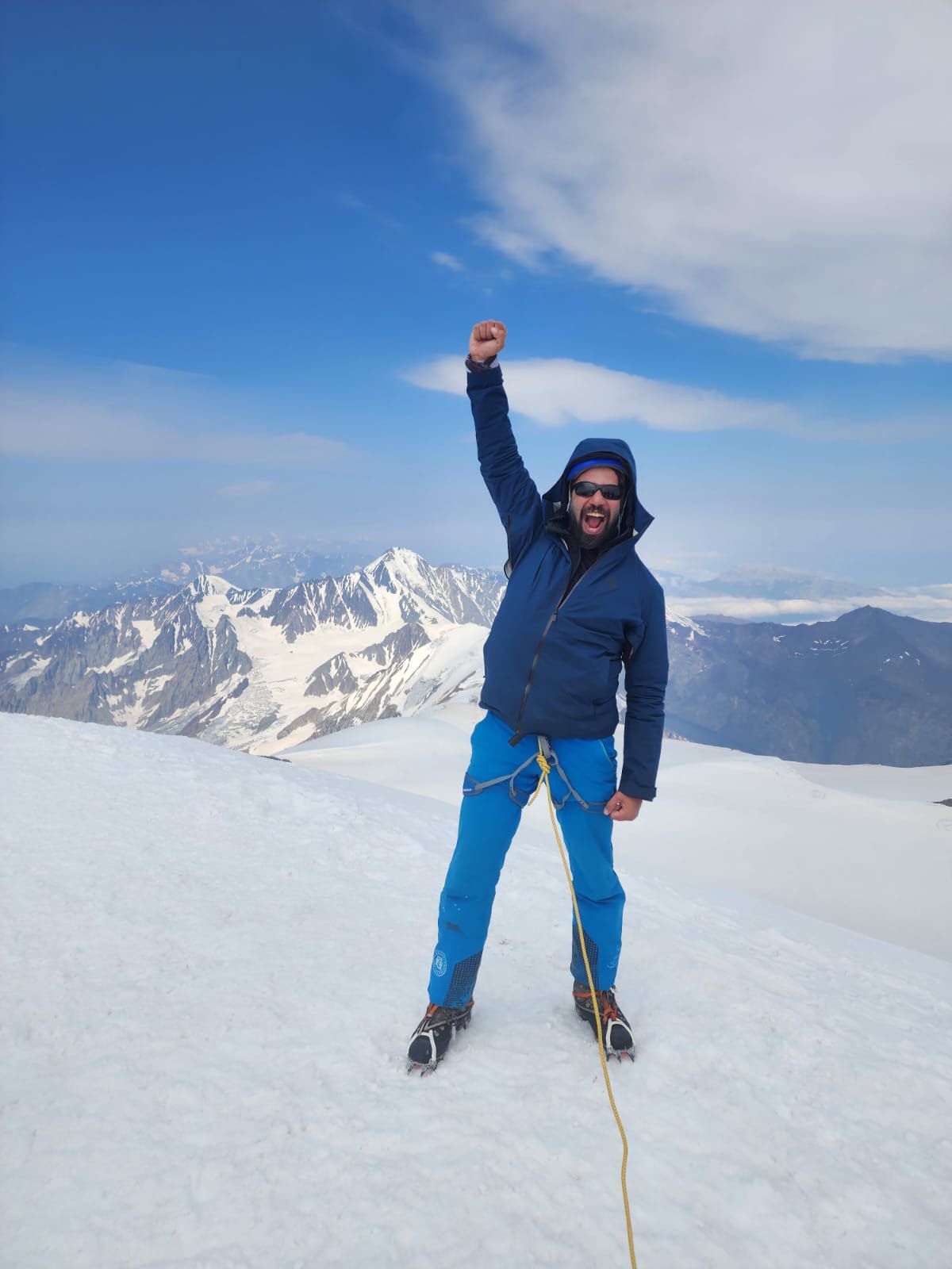 وأضاف "ليلة القمة دي بقى حوار، كل خطوة بطلعها كنت بختبر نفسي، يا لهوي علي الحلاوة والجمال.. الجبل بيخطف قلبي ويزقتي اكتر اني أعافر واكمل، وصلت للقمة، احساس غريب بين دموع الفرحة والتعب وانك أعلى من كل حاجة حواليك من علي ارتفاع 5054 متر.. الجبال مش بس تحدي لا دي رحلة بتحفز بيها روحك بتفكرك دايماً بقوتك وجمال الحياه والطبيعية .. في حب القمة الـ 28 .. جبل كازبك جورجيا.. وفي حب القمم اللي جاية".