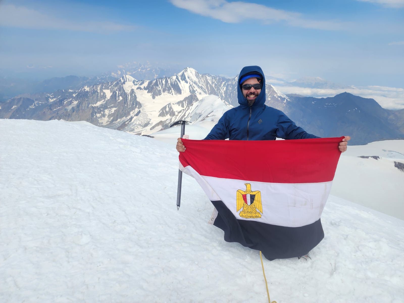 بعلم مصر.. مينا النجار يصعد "جبل كازباك" أعلى قمة في جورجيا