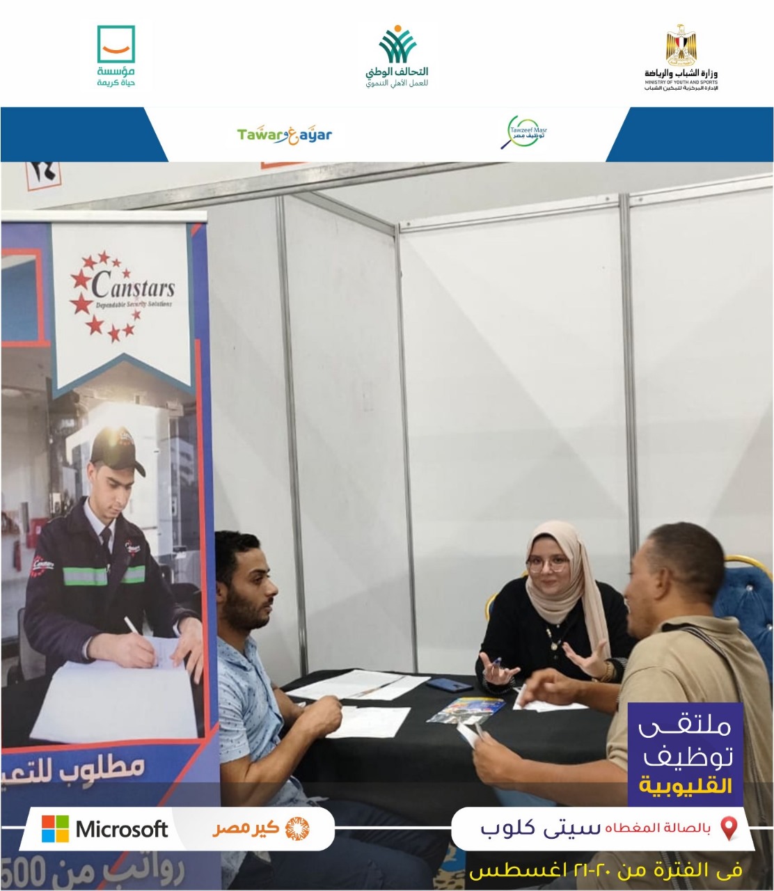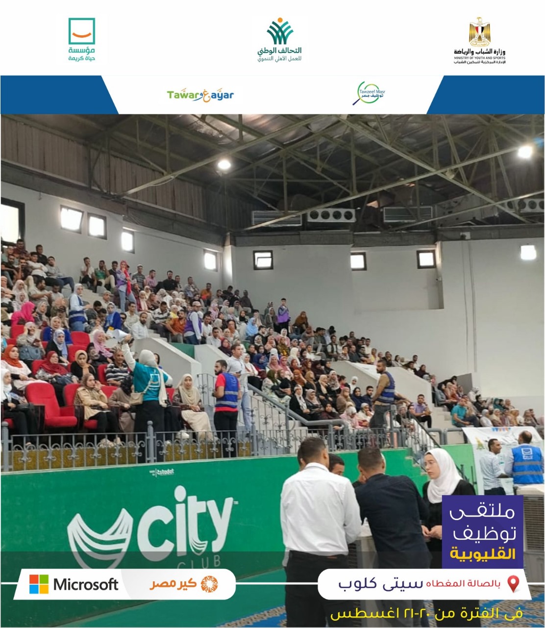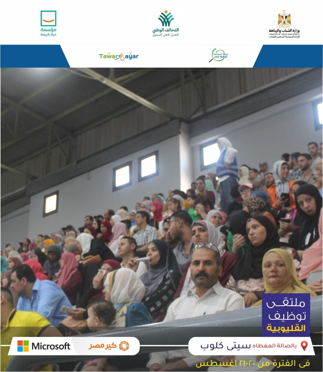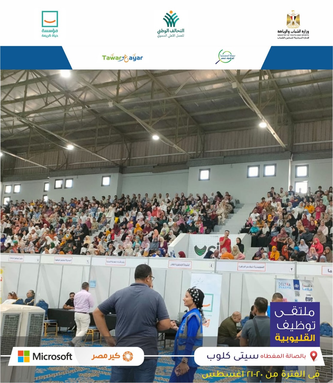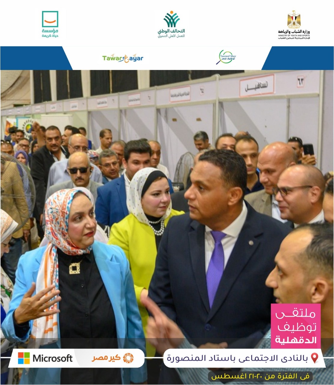 نفذت وزارة الشباب والرياضة من خلال الإدارة المركزية لتمكين الشباب (الإدارة العامة للمبادرات الشبابية)، ومؤسسة حياة كريمة ملتقيات "توظيف مصر "بالدقهلية والقليوبية من خلال مبادرة "توظيف مصر "، بالتعاون مع مؤسسة كير مصر وشركة مايكروسوفت، ضمن فعاليات صيف شبابنا لتأهيل الشباب لسوق العمل، والتشبيك مع الوظائف من خلال منصة توظيف مصر، بمشاركة قرابة ٨ الالف شاب وفتاة.