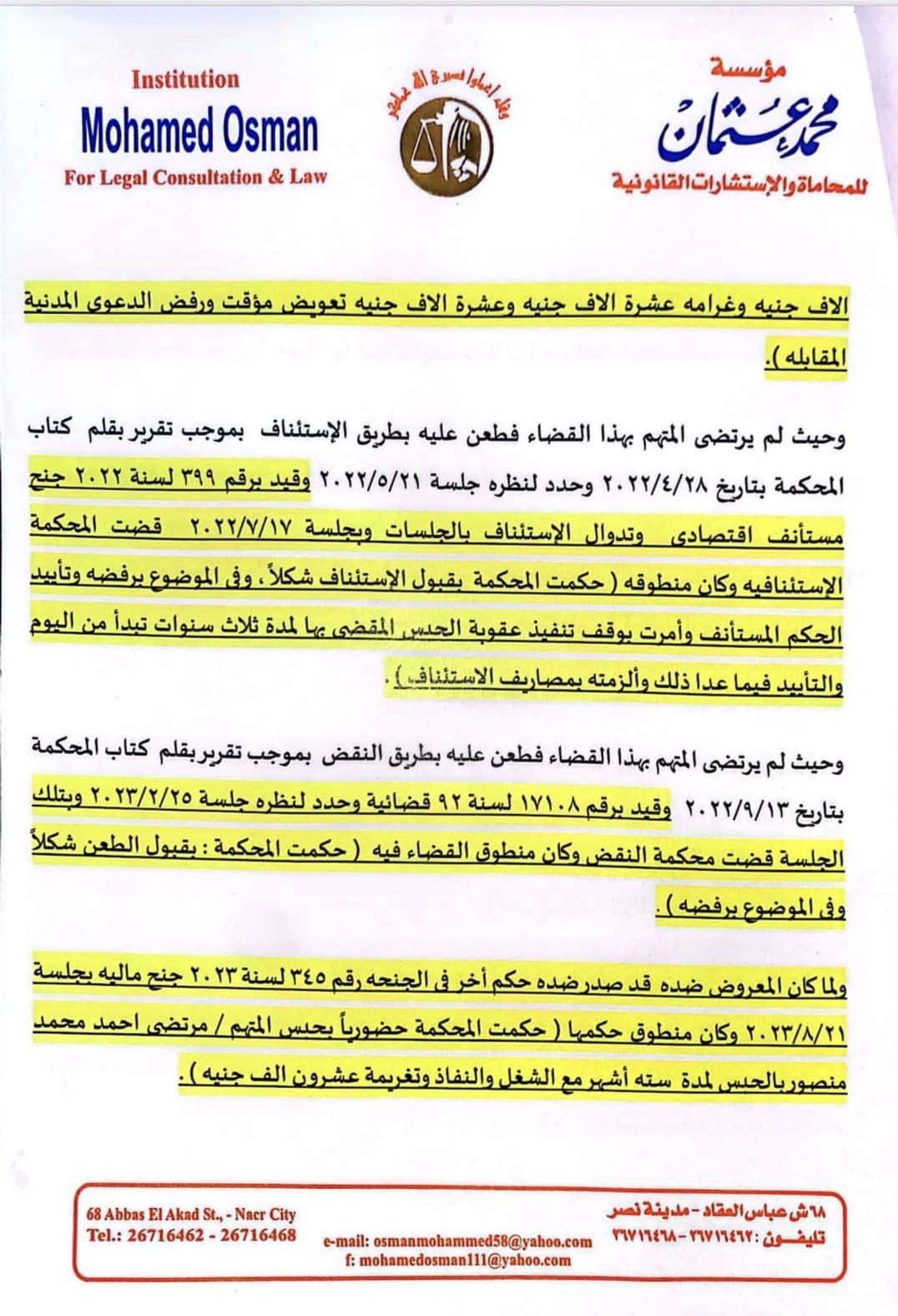 يذكر أن محكمة النقض قضت، في 25 فبراير 2023 في قضية أخرى، بتأييد الحكمين الصادرين ضد مرتضى بالحبس لمدة شهر واجب النفاذ، والحبس سنة مع إيقاف التنفيذ، لاتهامه بسب وقذف محمود الخطيب.