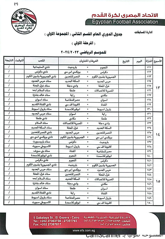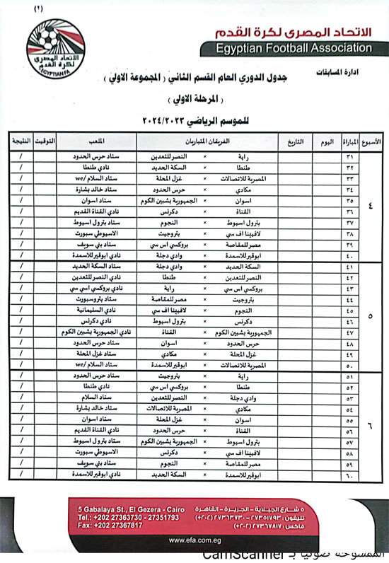 ننشر جدول مبارايات دورى المحترفين فى الموسم الجديد