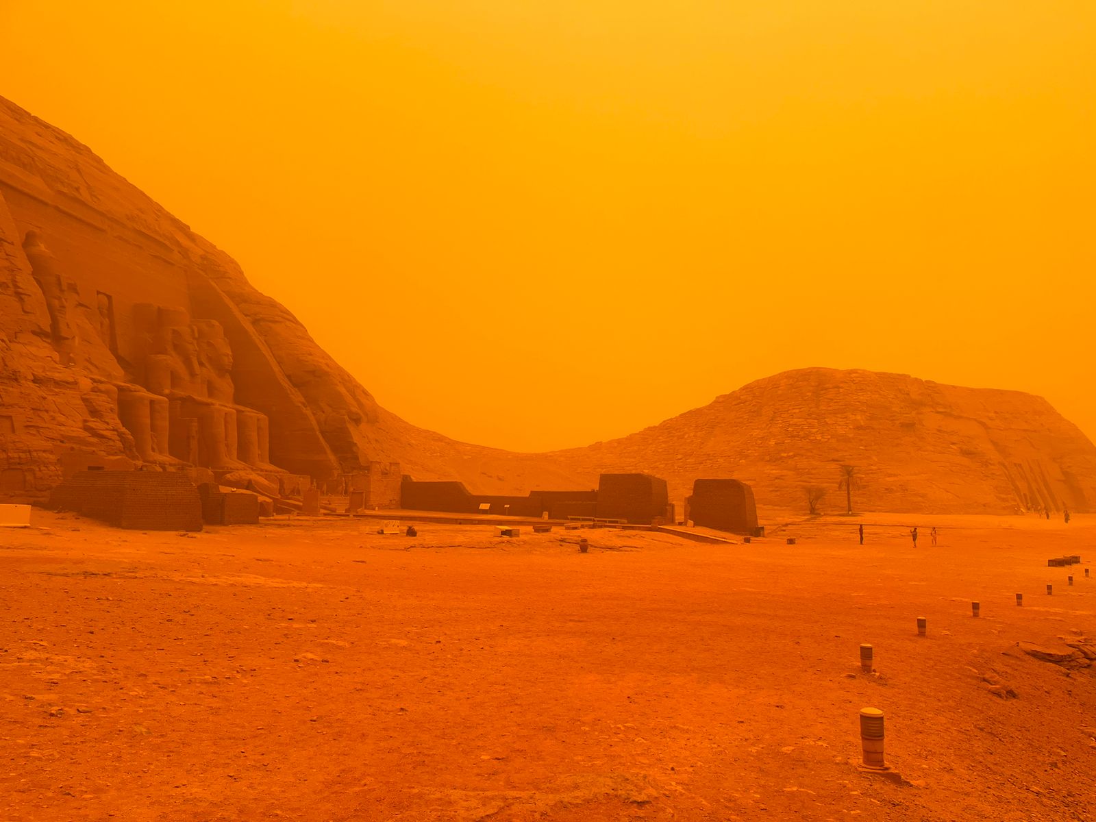 عاصفة ترابية قوية تضرب أبوسمبل (صور)