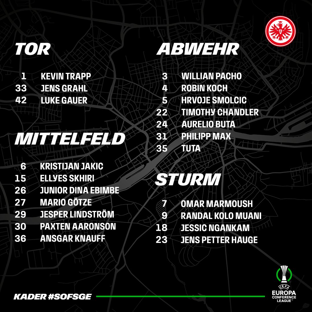 زين الدولي المصري عمر مرموش قائمة آينتراخت فرانكفورت الالمانى، لمواجهة ليفسكي صوفيا البلغاري في ذهاب الملحق المؤهل إلى دور المجموعات ببطولة دوري المؤتمر الأوروبي.