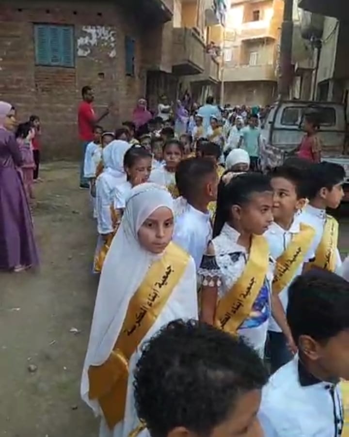 ونظم الأهالى احتفالية كبرى ضمت 300 طفل وطفلة من أبناء القرية، وتم وضع اوشحه باللون الذهبي ، وخرجت الاطفال في مسيرة كبيرة طافت شوارع القرية.
