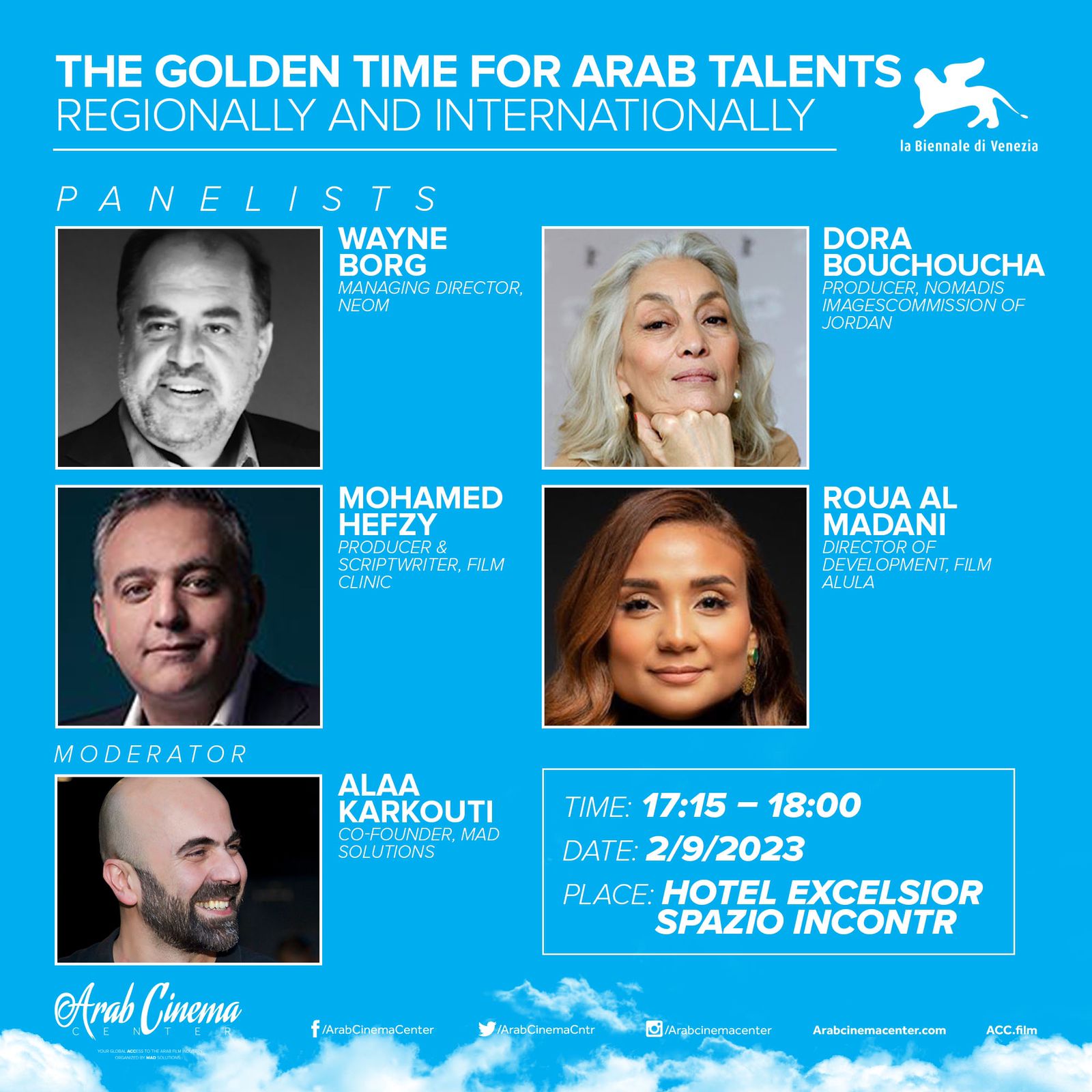 تأتي حلقة النقاش الثانية تحت عنوان العصر الذهبي للمواهب العربية إقليميًأ ودوليًا ويشارك فيها كل من واين بورغ (المدير العام، نيوم)، ودرة بوشوشة (منتجة، شركة Nomadis Images)، ومحمد حفظي (منتج وسيناريست، شركة فيلم كلينك) ورؤى المدني (مديرة التطوير، فيلم العلا). يدير الحلقة علاء كركوتي الشريك المؤسس لشركة MAD Solutions.