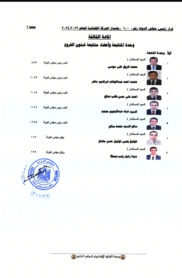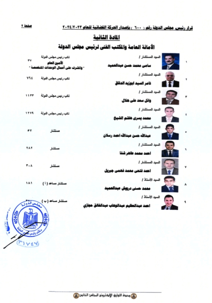 بالأسماء.. ننشر الحركة القضائية لمجلس الدولة لعام 2023
