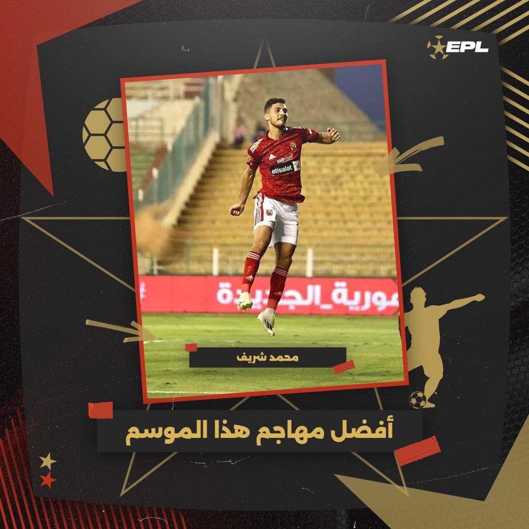 أعلنت رابطة الأندية المصرية المحترفة عن فوز محمد شريف لاعب الفريق الأول بالنادي الأهلي بجائزة أفضل مهاجم في الدوري المصري باختيار الجمهور عبر منصات التواصل الاجتماعي.