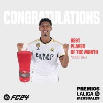 ونشر الحساب الرسمي لرابطة الدوري الإسباني عبر حسابه الرسمي على موقع التواصل الإجتماعي تويتر، بيانا يعلن خلاله فوز بيلنجهام بجائزة أفضل لاعب في الدوري الإسباني لشهر أغسطس.