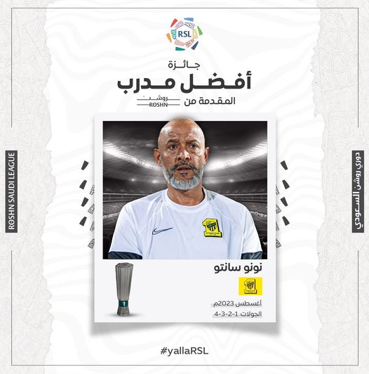 وفاز المدير الفني لفريق الاتحاد، البرتغالي نونو سانتو بجائزة أفضل مدرب في شهر أغسطس بدوري روشن السعودي للمحترفين.