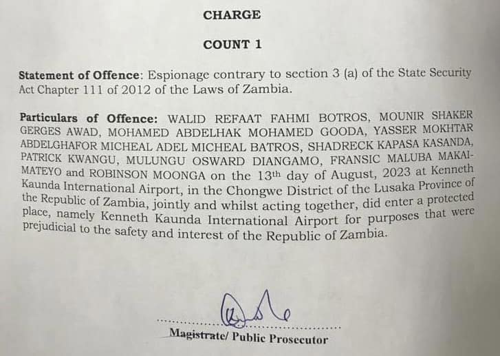ووجهت محكمة جزئية في العاصمة لوساكا الاتهام للرجال لكن القاضي ديفيس شيبويلي أجل البت في طلب الإفراج عنهم بكفالة بعد أن رفض الدفاع شهادة المدعي العام برفض الإفراج عنهم.