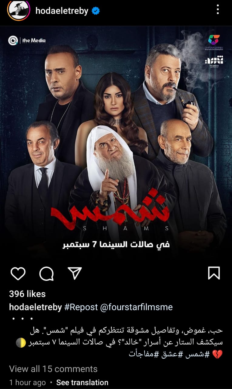 روجت الفنانة الشابة هدى الأتربي لفيلمها الجديد “ شمس ”، و ذلك من خلال منشور نشرته على صفحتها عبر موقع تبادل الصور و الفيديوهات “ انستجرام ” .