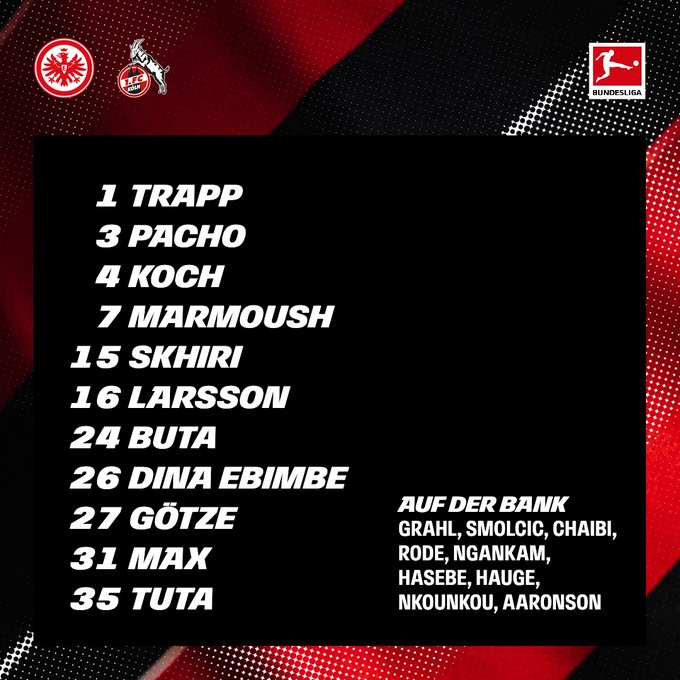 وتواجد عمر مرموش أساسياً في تشكيل آينتراخت فرانكفورت ضد ضيفه كولن لمباراة اليوم في الدوري الألماني، وجاء كالاتي: