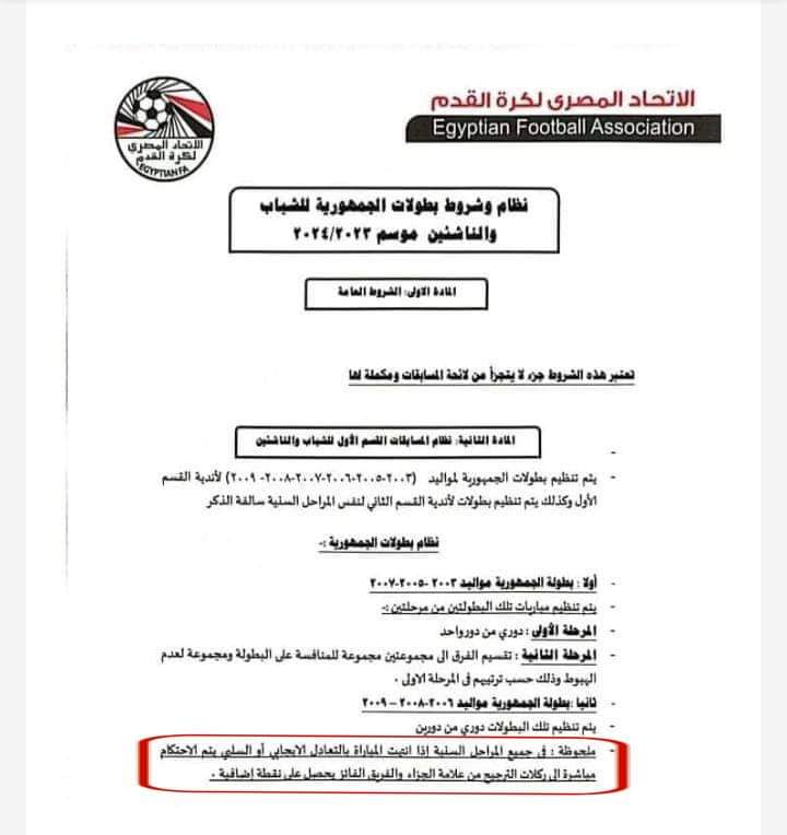 قاعدة جديدة في دوري الجمهورية للناشئين مواليد 2003 على الطريقة الأمريكية
